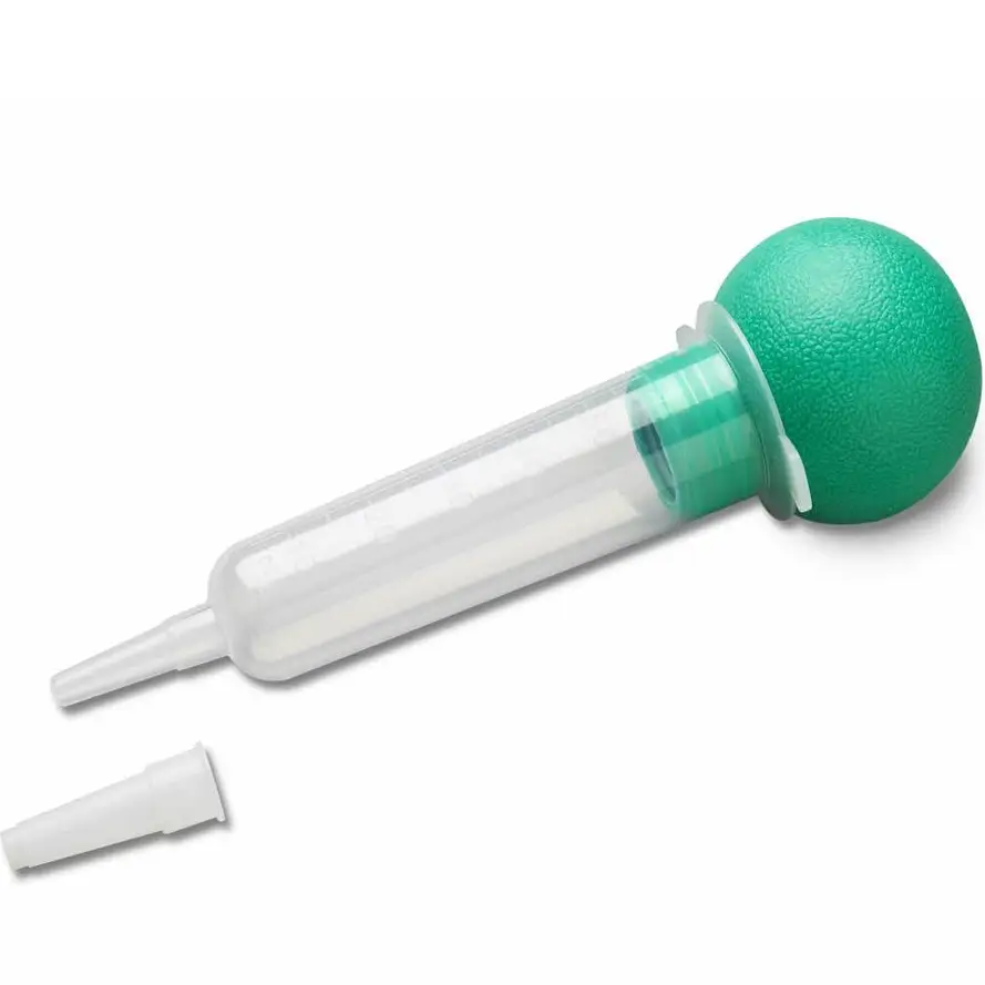 - Soft, pliable, polymer 60 mL bulb irrigation syringe is textured and has “ears” for a better grip; large, raised, easy-to-read graduations in both ounces and milliliters